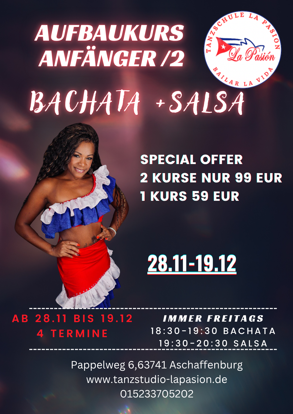 Salsa Anfänger2-Aufbau Kurs(28.11 bist 19.12/4 Termine).Einzelkurs:59(Kombi Salsa & Bachata,99 eur.)