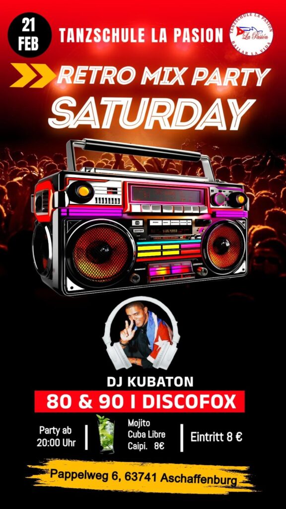 Willkommen in Unsere Discofox 80 & 90` Party Wir bieten vorher 45 min Discofox Tanzkurs für Anfänger bist Mittelstufe (Teilnehmenden nur mit einer Voranmeldung). beginnt um 19:15-20:00 Uhr Direkt in anschluss Startet unsere 80 & 90` Party Es warten leckere Cocktails und heiße Beats von 80 & 90ger bis Salsa,Bachata auf dich. An den Decks […]