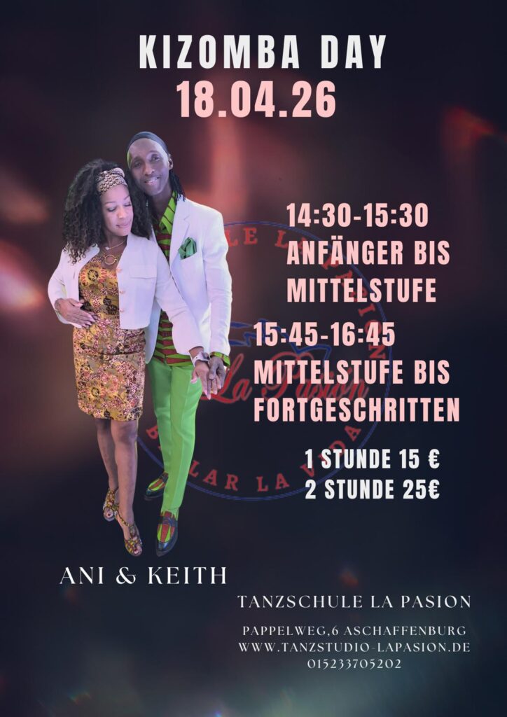 Die Tanzschule La Pasion lädt euch herzlich zu einen besonderen Kizomba-Workshop ein. Taucht ein in die Welt der Kizomba-ein sinnlicher eleganter Tanz, der Verbindung, Musikalität und Gefühl vereint.In diesem Workshop arbeiten wir an Technik, Führung & Folgen sowie an der harmonischen Verbindung im Paar. 14:30-15:30 Anfäger bis Mittelstuffe 15;45-16:45 Mittelstuffe bis Vorgeschritten 1 stunde 15 […]