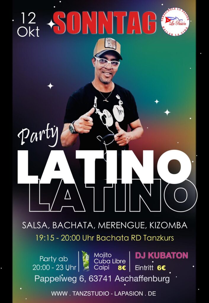 Die Party startet direkt ab 20:00 Uhr mit DJ Kubaton mit dem Besten aus Salsa,Bachata,Kizomba und einer Prise Latin Beats.