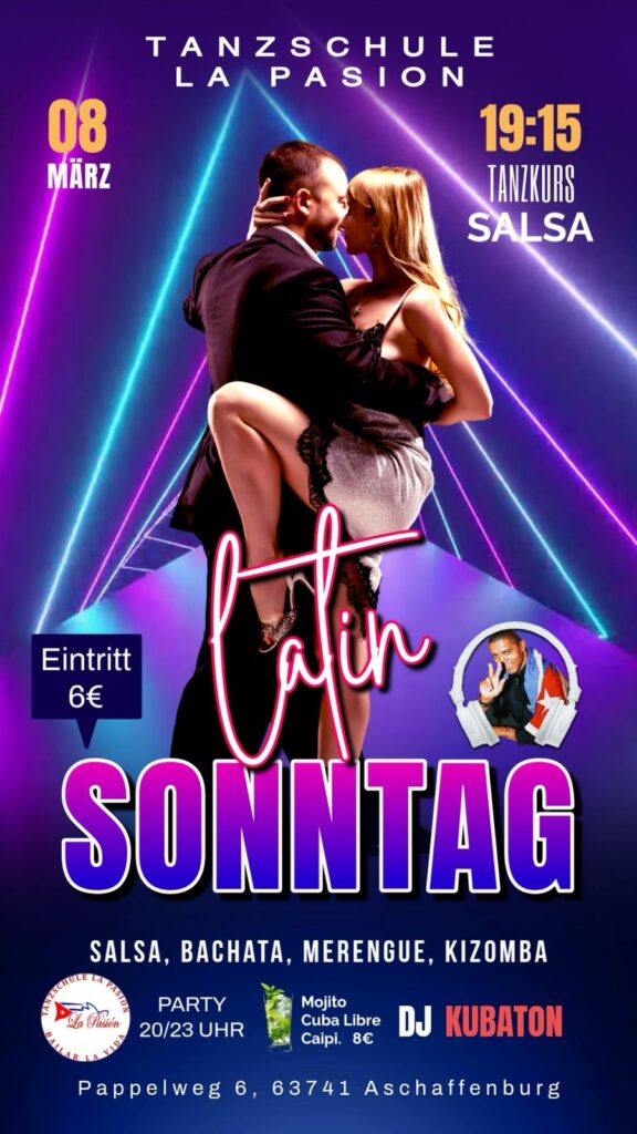 Die Tanzschule La Pasion begrüßt euch herzlich zur Latin Party am 08.03.2026